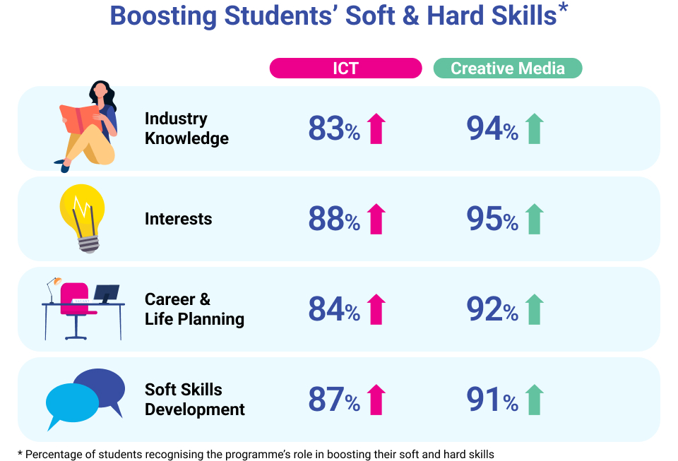 藉著各種學習活動,包括走訪企業、黑客馬拉松、影子工作學習、業界師友計劃、實習、輔導和分享講座等等,增進職場技巧。
