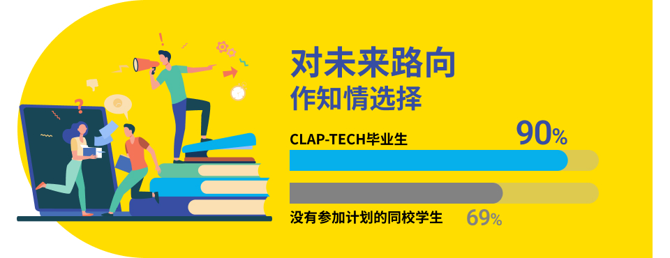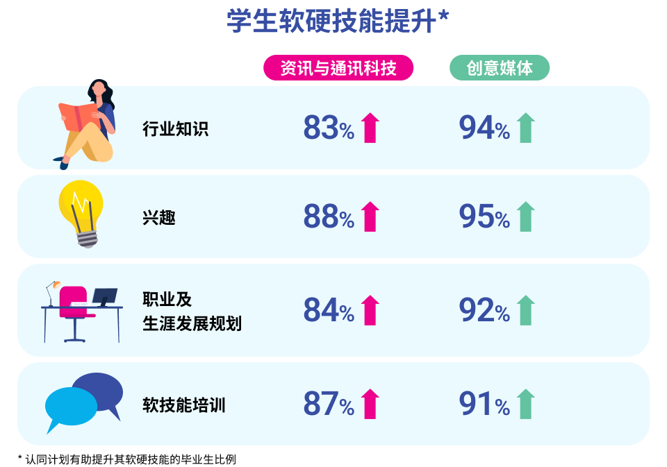 藉著各種學習活動,包括走訪企業、黑客馬拉松、影子工作學習、業界師友計劃、實習、輔導和分享講座等等,增進職場技巧。