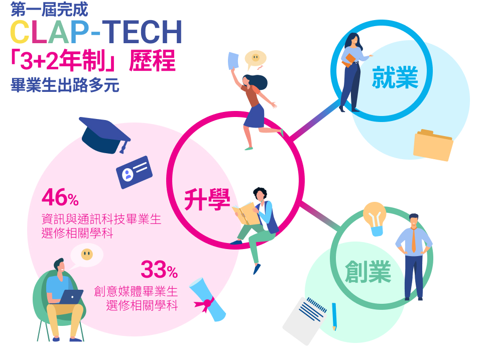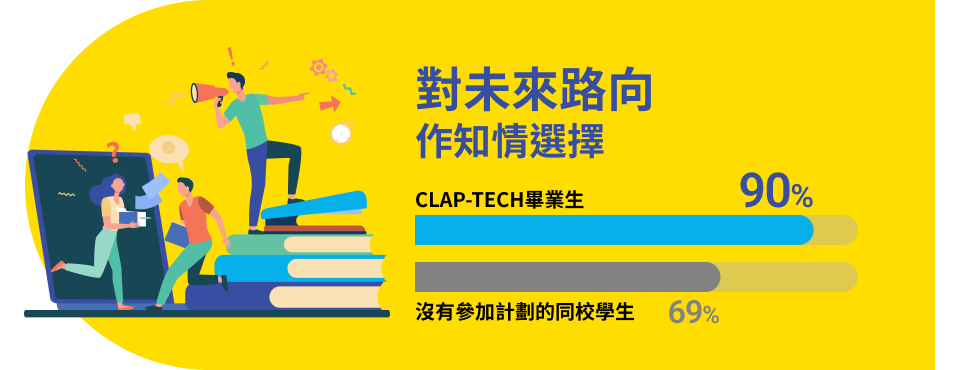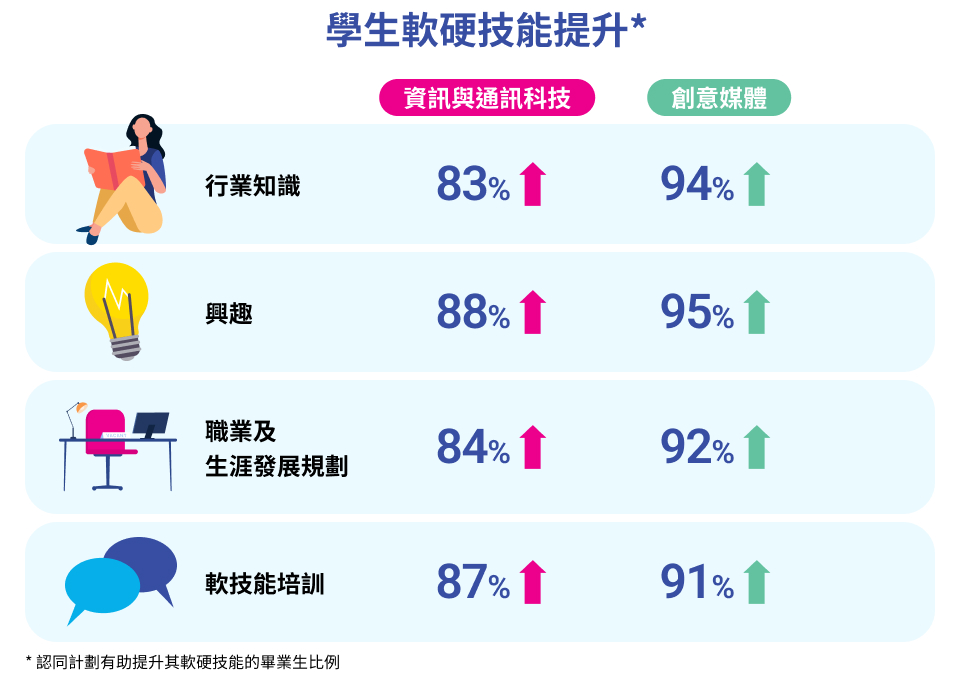 藉著各種學習活動,包括走訪企業、黑客馬拉松、影子工作學習、業界師友計劃、實習、輔導和分享講座等等,增進職場技巧。